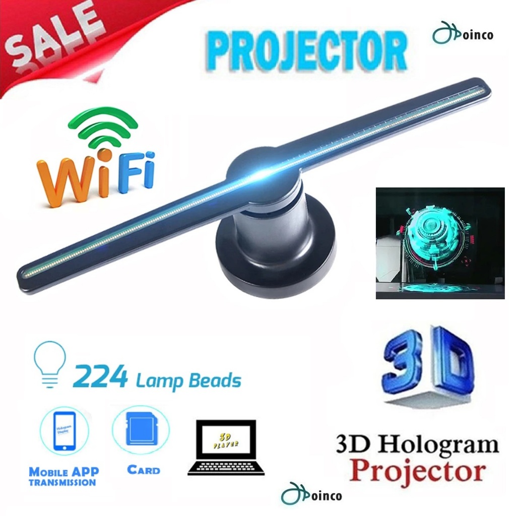 Projetor holográfico 3D LED Wi-Fi Display Ventilador Holograma Reprodutor de Publicidade [7/8]