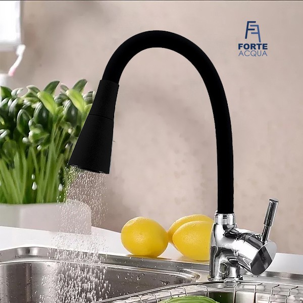 Torneira Gourmet Pia Para Cozinha Bancada Gourmet com Bico Alto Extensível 50cm Luxo Com Misturador Monocomando Água Quente e Fria Preto Fosco