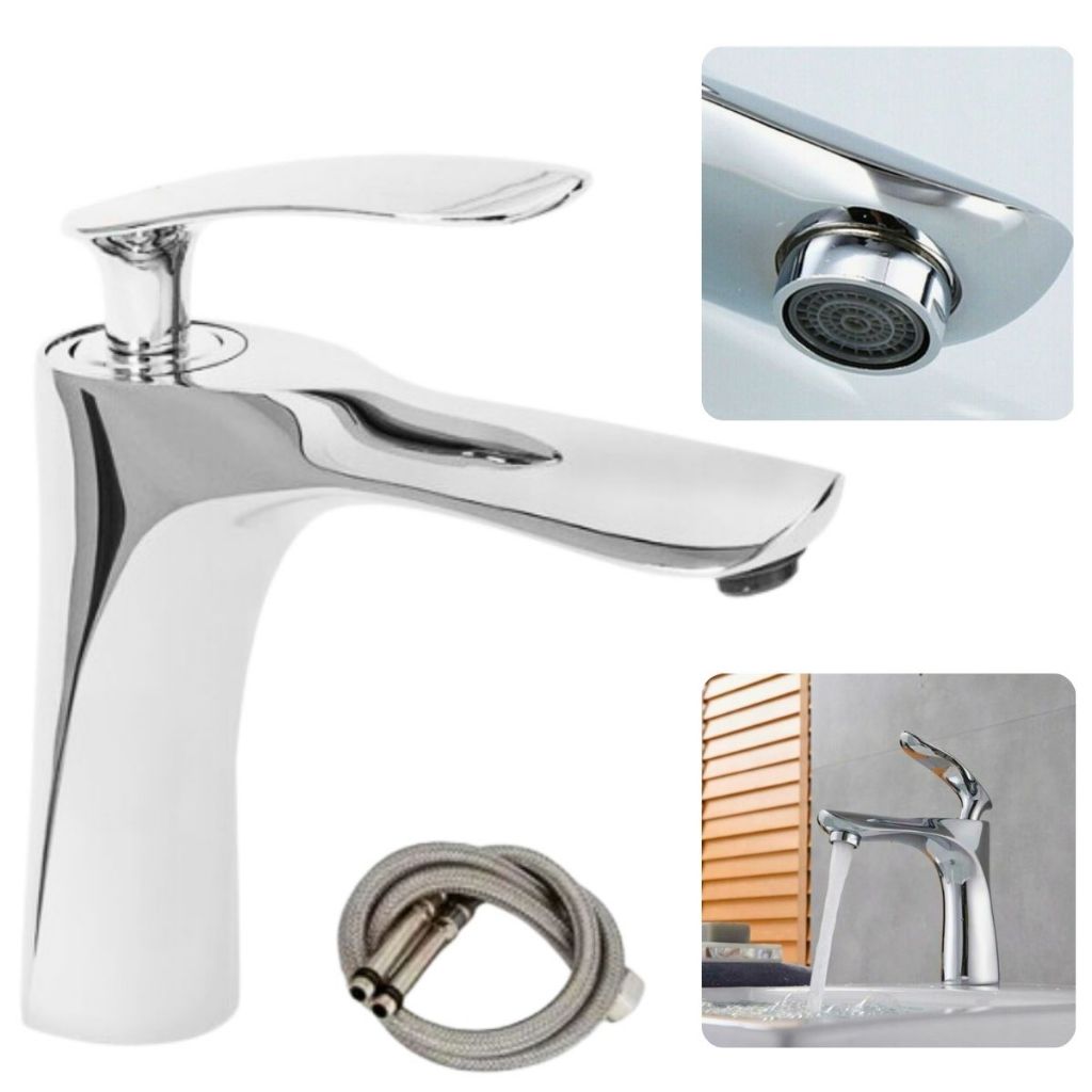 Torneira Banheiro Monocomando Misturador para Bancada (Mesa) em Latão Cromada Modelo Twister Lavatorio Gourmet Luxo Água Quente e Fria ou Somente Fria