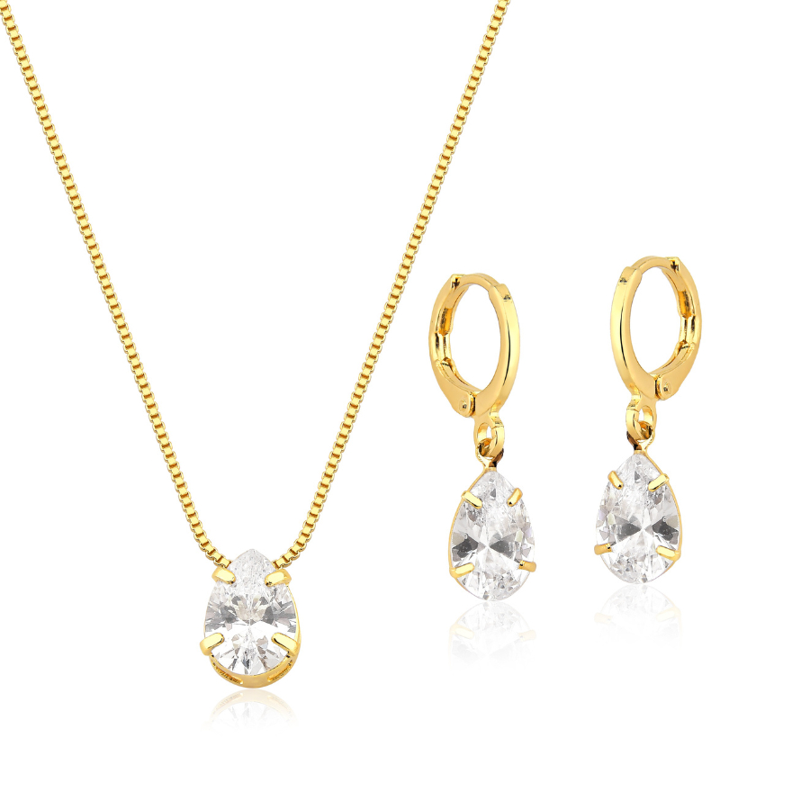Kit Colar E Brinco Conjunto Feminino Folheado De Ouro 18k