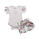 Conjunto De Roupa De Verão Para Bebês Recém-nascidos, Cor Sólida, Babado, Tops, Calças Floridas,