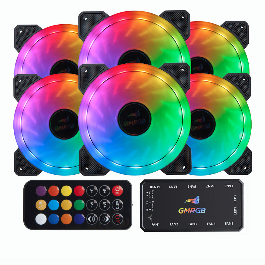GMRGB Kit 3/6 120mm pc computador caso ventilador de refrigeração 6pin ajustável rgb led 12cm ventilador mudo 5v dc argb ventiladores ajustar velocidade aura sincronização