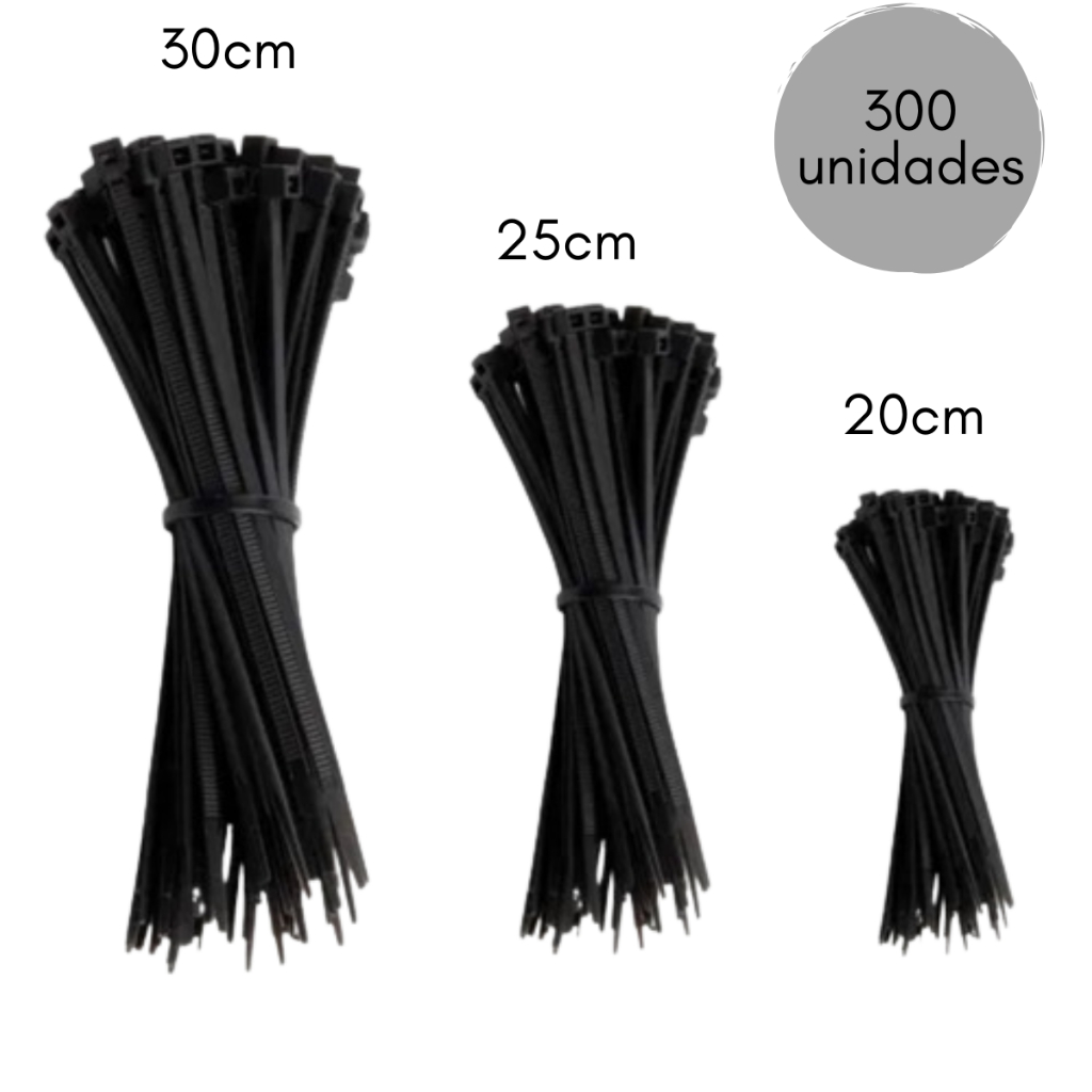 Ki 300 Unidades Abraçadeira Enforca Gato Fita Cinta Plástica Presilha de Nylon Amarra 3 tamanhos 20, 25 e 30 cm