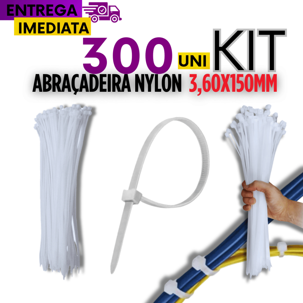 Kit 300 Unidades Cinta Plástica Abraçadeira Nylon 3,60x150mm Branca Qualidade Garantida Resistente Durável