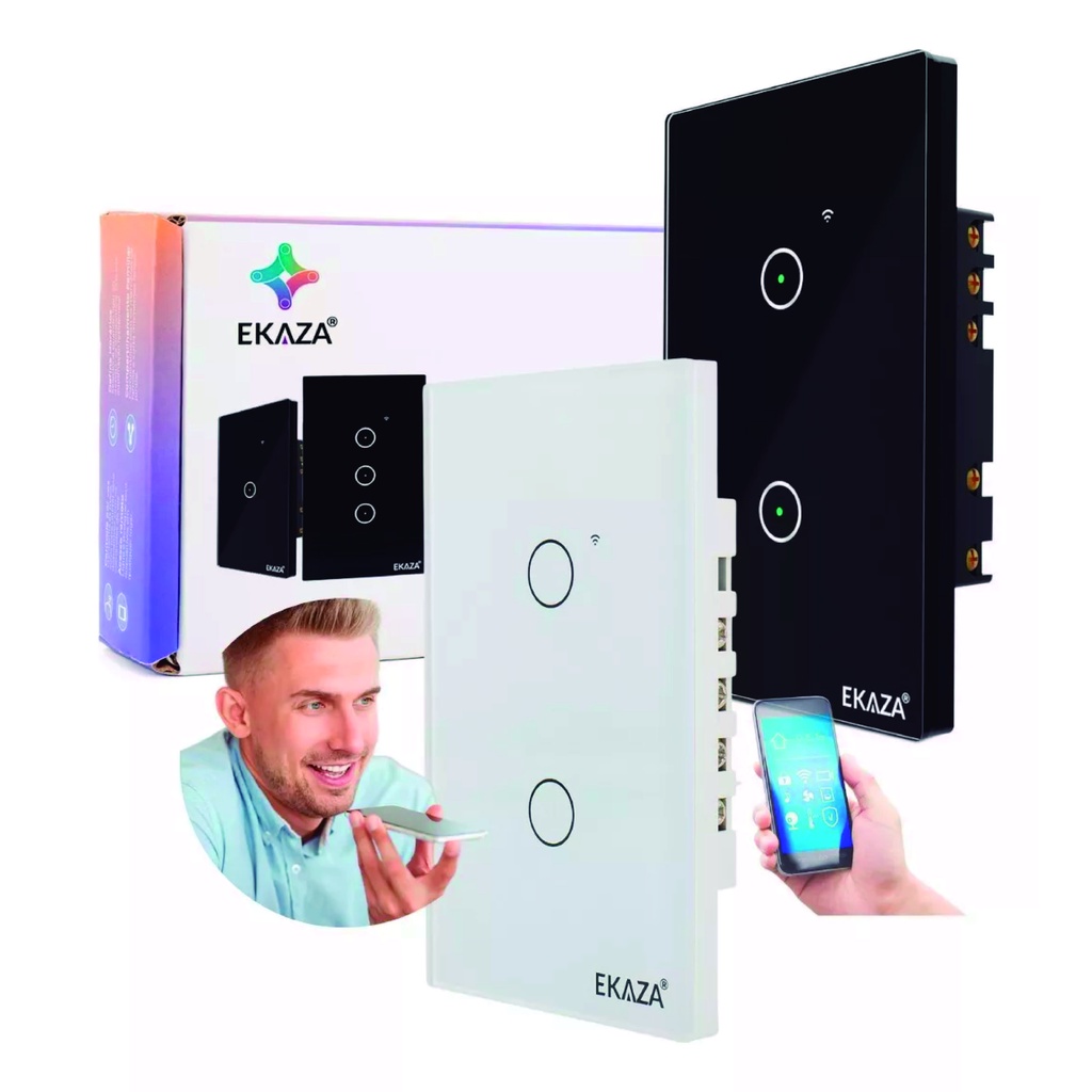 Smart Interruptor Wifi Inteligente 2 Botões Branco Preto EKAZA Touch Alexa Google Smart Life Tuya