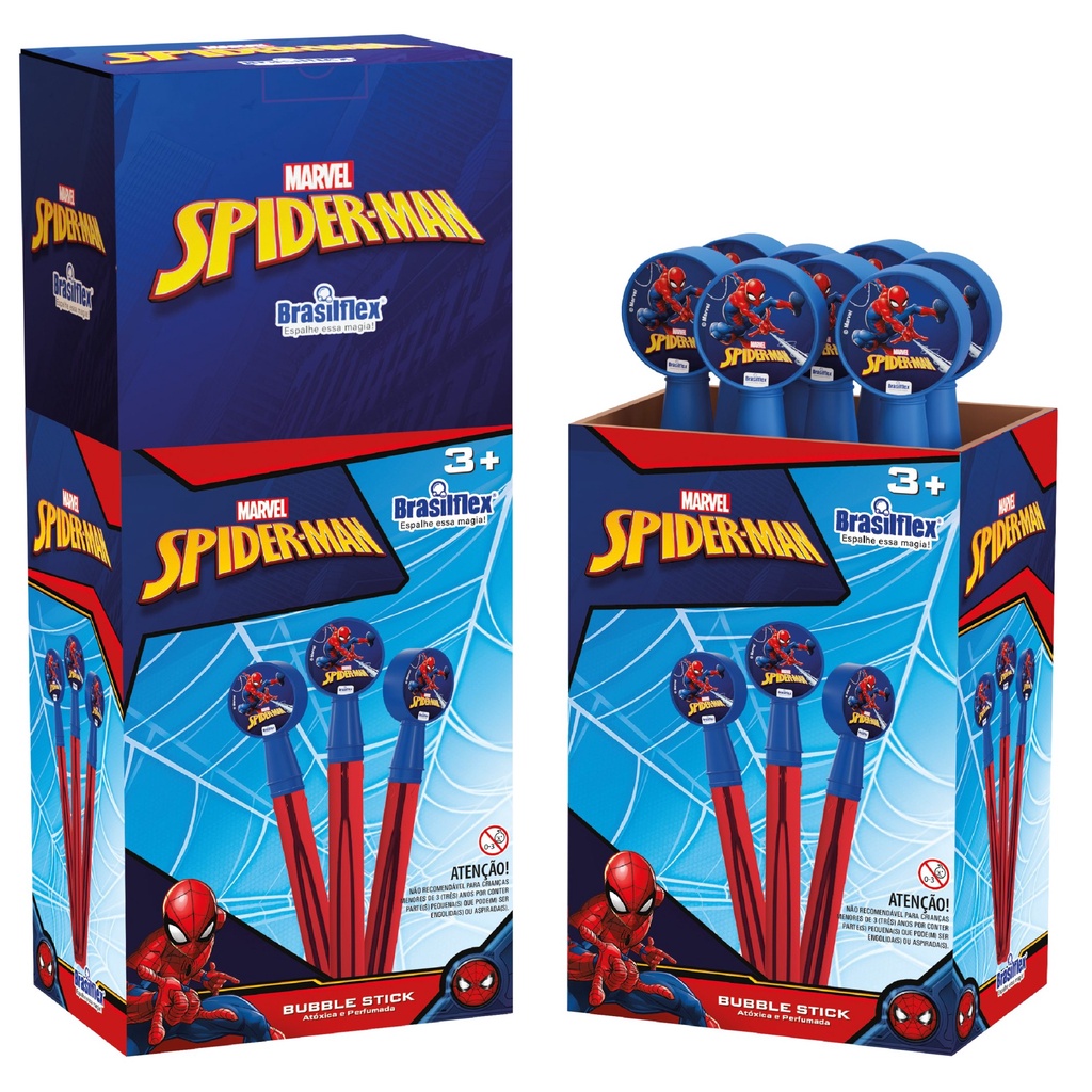 Lançador de Bolha de Sabão Com Jogo Homem Aranha - Spider Man Bubble Stick - Brasilflex