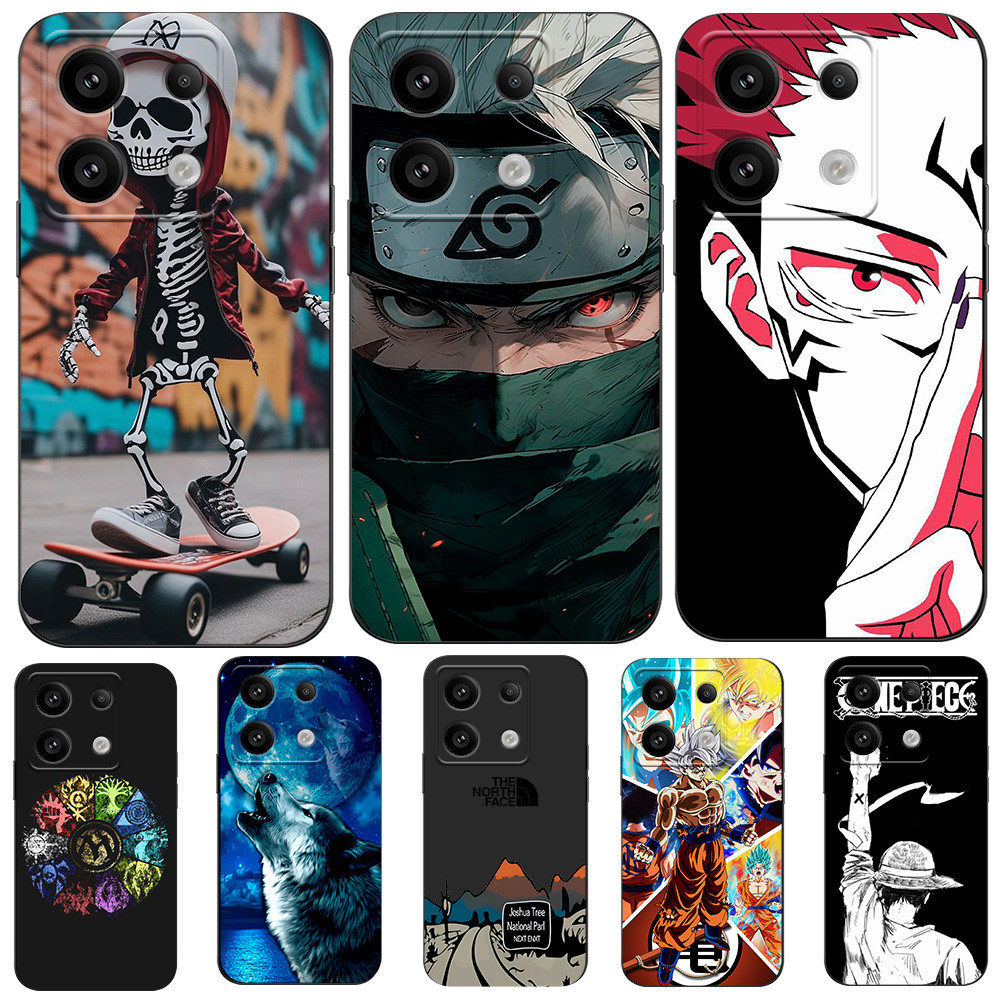 Para Xiaomi Redmi Nota 13 5G 4G Caixa Global Capa Telefônica tpu Anime Personagens Pretos