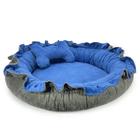 Cama Pet Dupla Face Para Cães e Gatos Pelúcia Retrátil Cinza c/ Azul