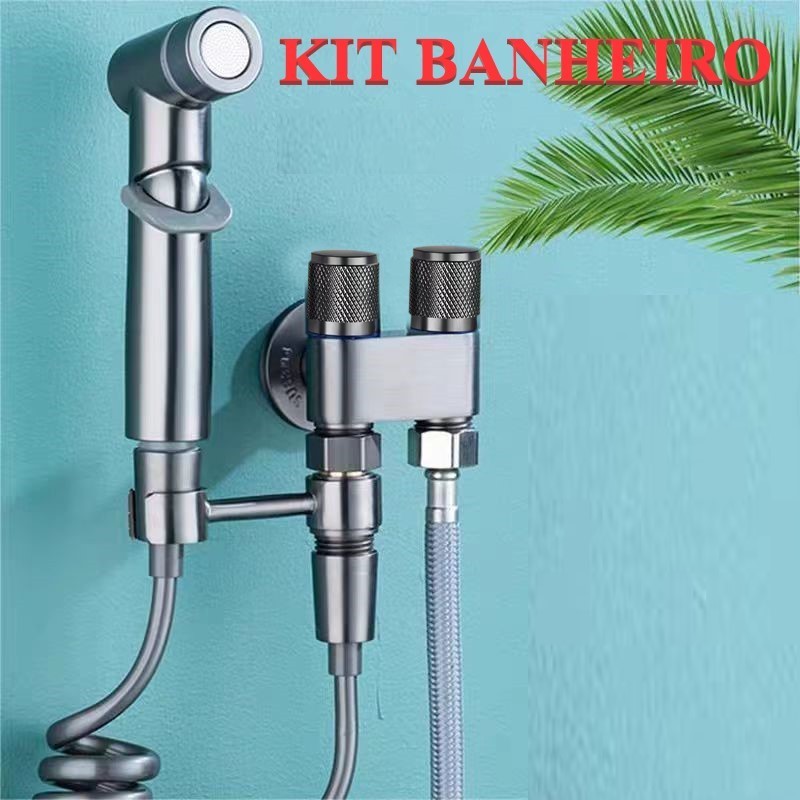 KIT BANHEIRO Ducha Higiênica Duas Saídas De 1/2 Mm Com Registro Conjunto De Pulverizador