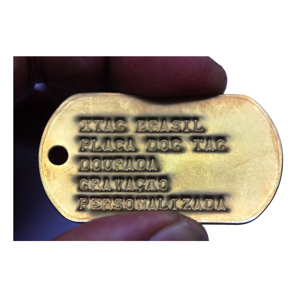 Placa Dog Tag Dourado Latão Gravação Baixo Relevo Estilo Vintage Segunda Guerra Mundial USBRASS BR