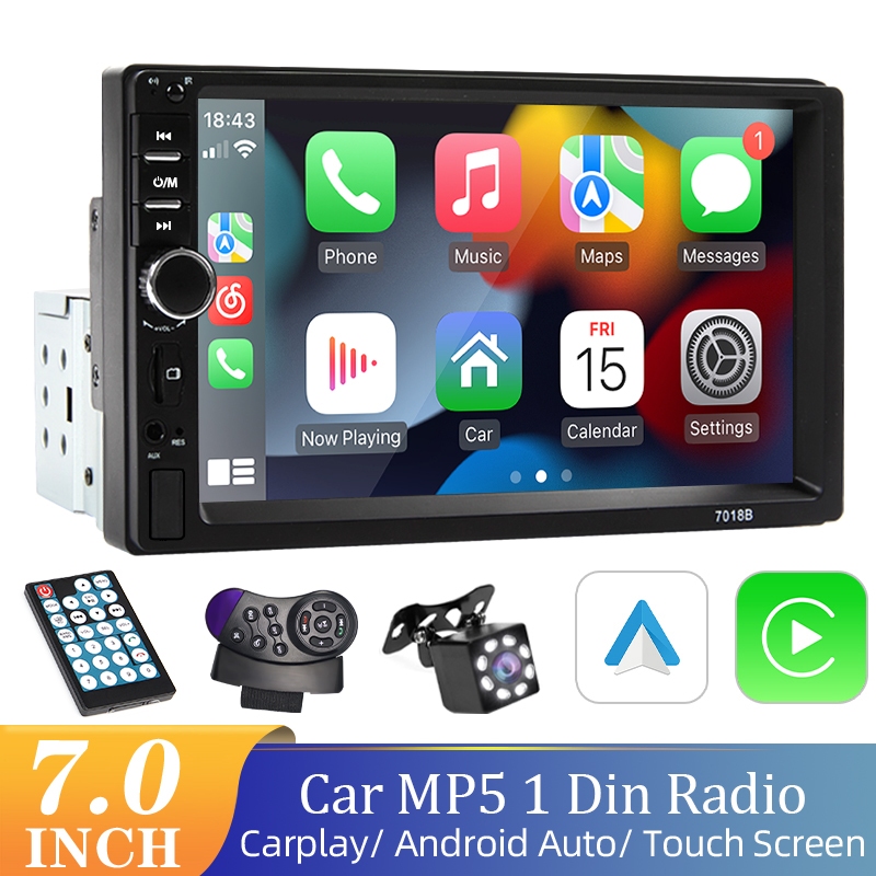 Carplay Multimídia Central Android Auto 1 Din 7 Polegadas MP5 Bluetooth USB/AUX/TF Mirrorlink Com Tela Sensível Ao Toque