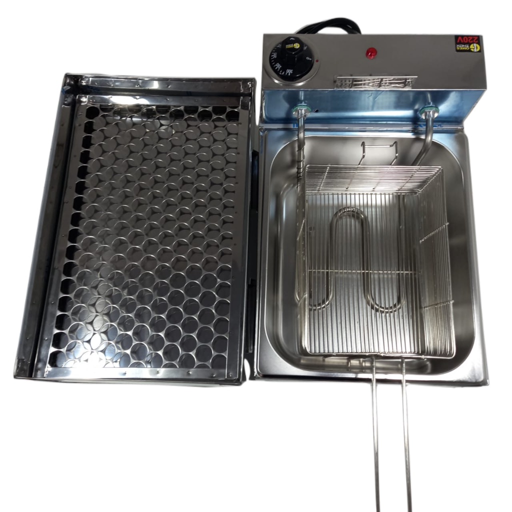 Fritadeira 5 Litros Elétrica Conjugada Com Escorredor Ao Lado Profissional Gomes Inox Rápido Aquecimento