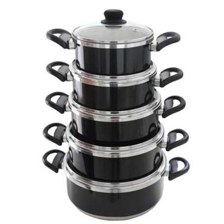 Kit 5 Panelas Alumínio Grosso Jogo de Panela Preta Tampa Vidro