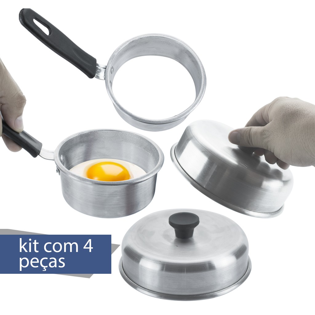 Kit Cozinha 1 Modelador de Ovo 10cm Aluminio + 1 Abafador de Hamburguer 16cm Aluminio