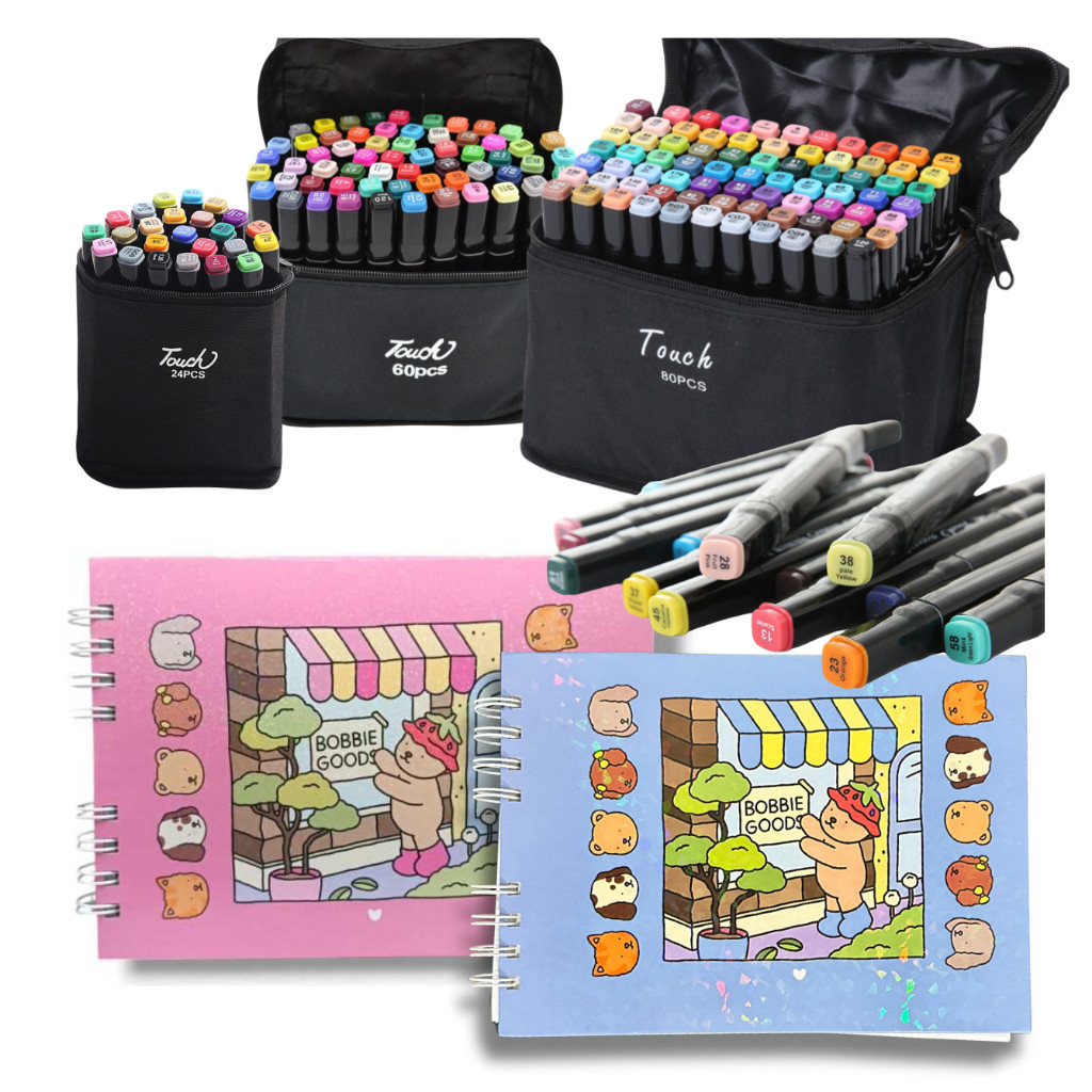 Kit Livro De Colorir Bobbie Goods Capa Dura 50 Páginas + Canetinhas Marca Texto Touch 24/48/60/80