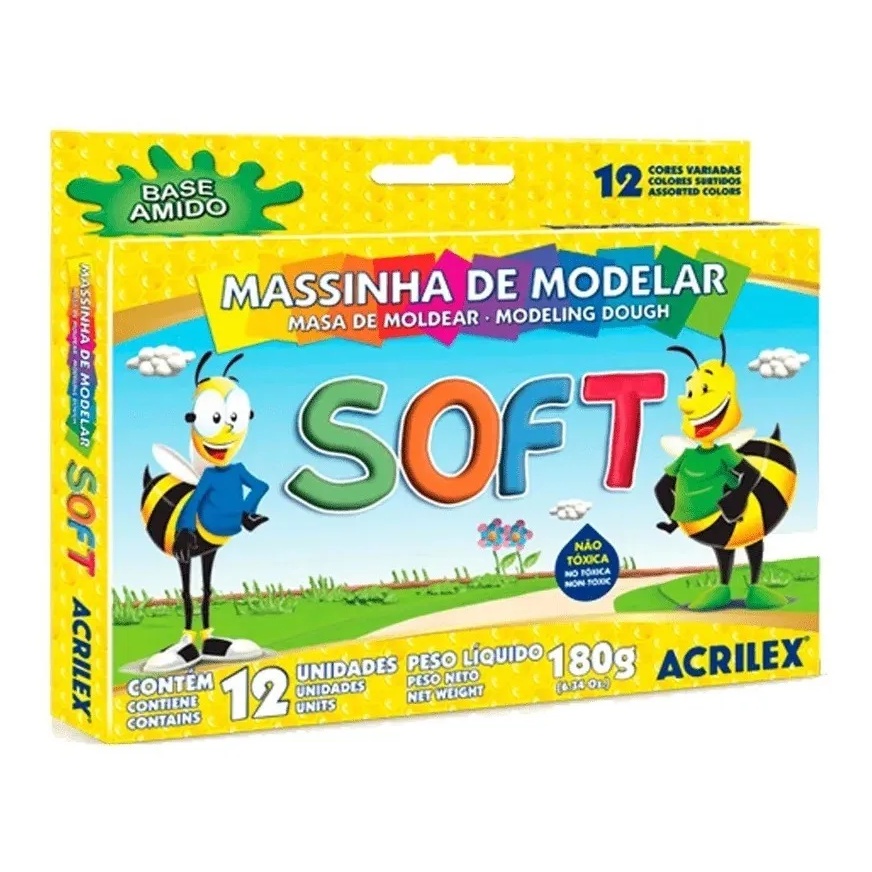 Kit Massinha Massa De Modelar Escolar não Toxica 12 Cores Soft 180g Acrilex - Escolha Sua Variação