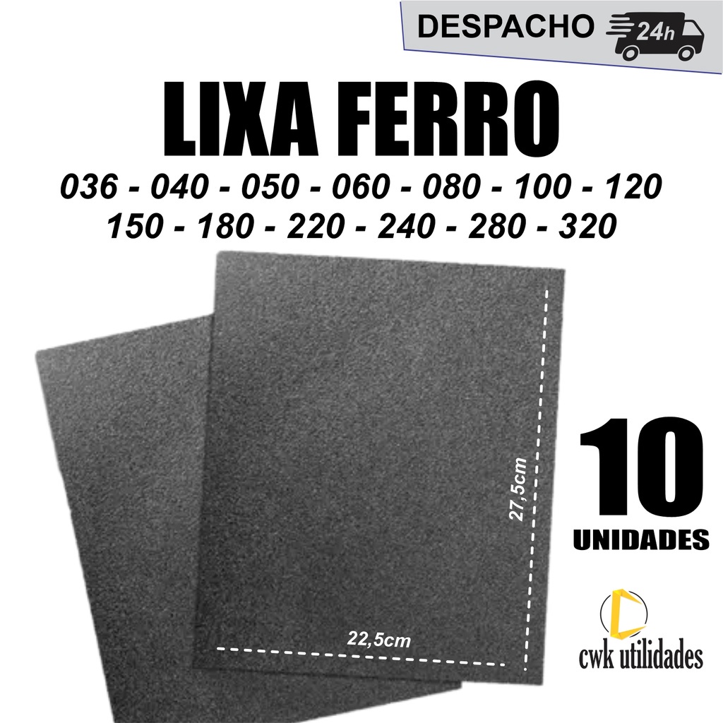 Kit 10 Lixa Ferro 36, 40, 50, 60, 80, 100, 120, 150, 180, 220, 240, 280, 320