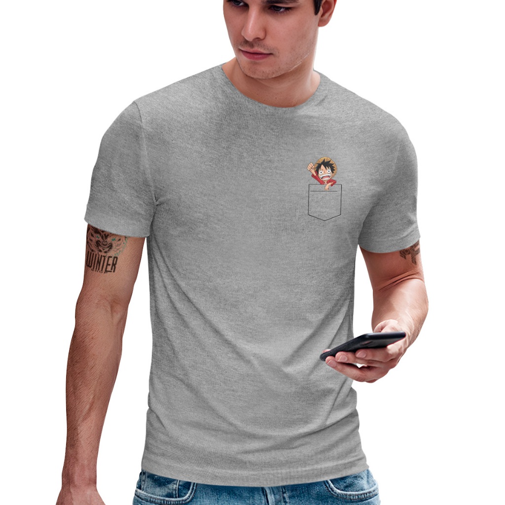 Camisa Básica Luffy Bolso Clas Camiseta 100% Algodão