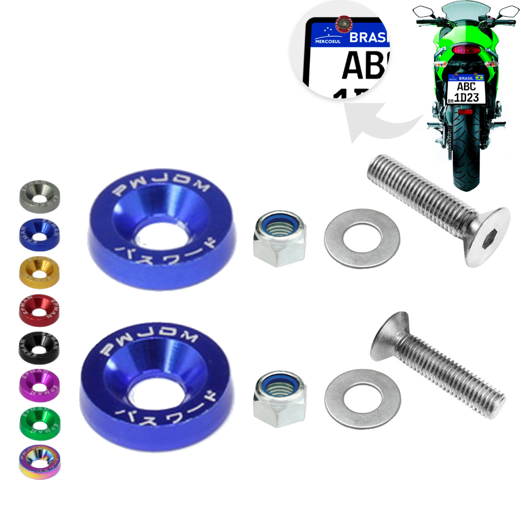 Parafuso Para Placa De Moto E Carro Kit c/ 2 Anilha Em Alumínio Rosca M6 Fender Washers
