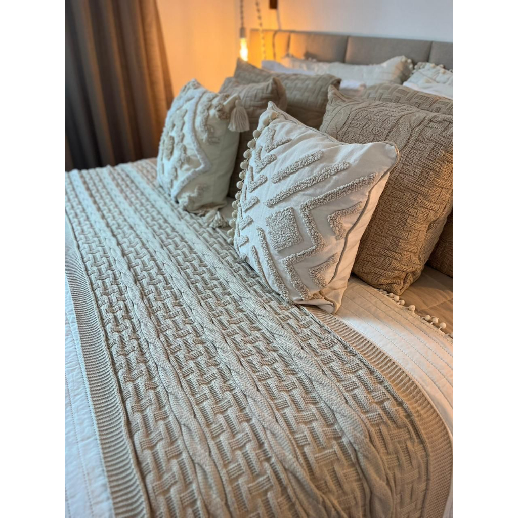 KIT PESEIRA DE TRICÔ PARA CAMA CASAL QUEEN 2,30X60 CM + 2 CAPAS DECORATIVAS EM TRICOT