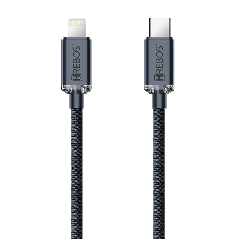 Cabo turbo Tipo-c x Lightining de 1 metro para iphone - tecido trançado e pontas em acrílico Hrebos