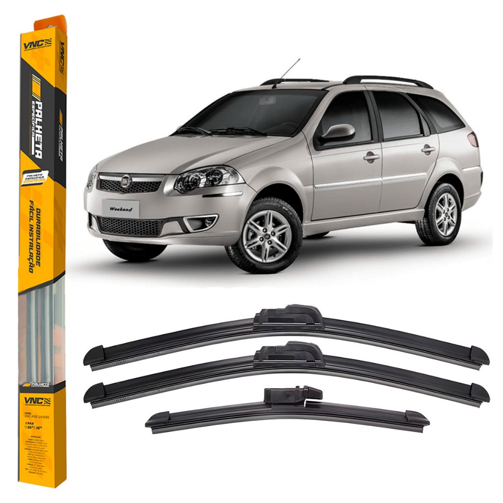 Kit 3 Palhetas Fiat NOVA PALIO Limpador De Parabrisa Dianteiro + Traseiro Ano 2012 2013 2014 2015 2016