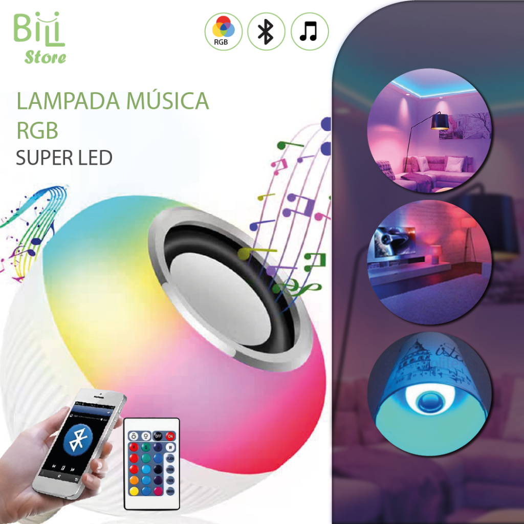 Lâmpada Bluetooth Caixa De Som 12W Super Led com controle RGB Bivolt E27 | Festa | Natal | Ano Novo | Quarto RGB