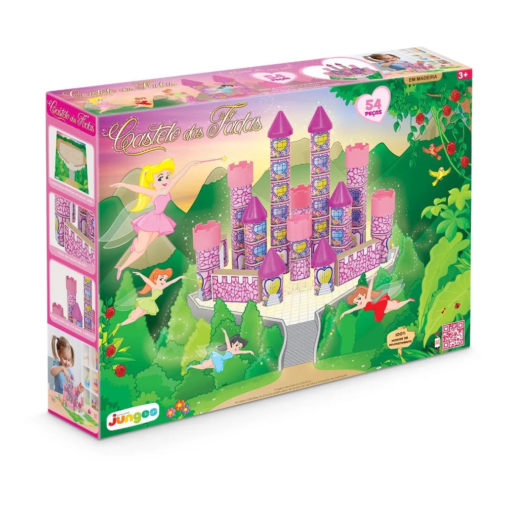 Castelo Das Fadas 54 peças Blocos De Montar Em Madeira MDF Brinquedo Menina +3 anos Junges 728