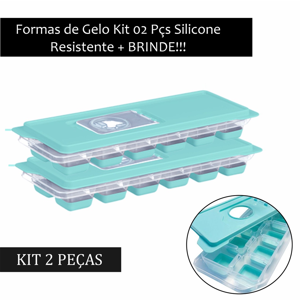 Formas de Gelo Kit 02 Pçs Silicone Resistente Tampa de Aba Enche Fácil Fundo Silicone (Revenda) + Brinde