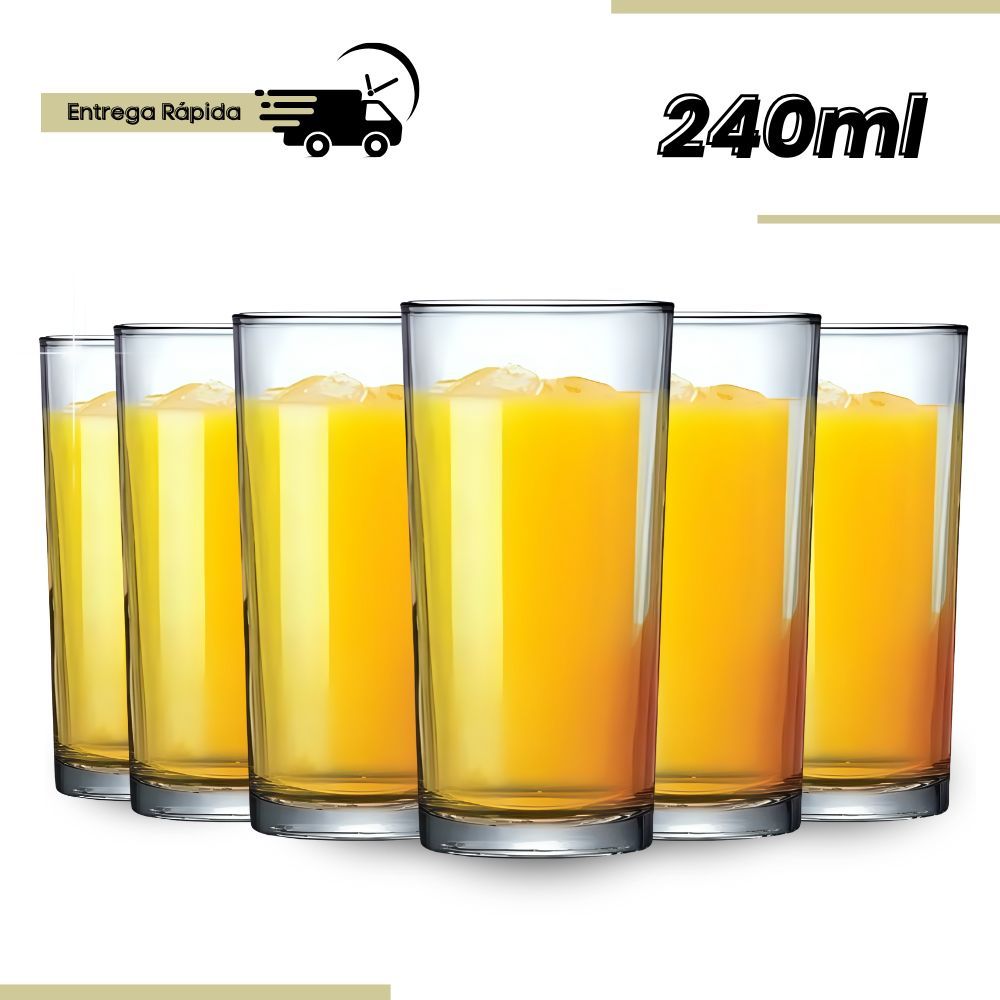 Jogo De Copos Em Vidro Kit 6 Peças Cozinha Para Água Suco Drink refrigerante 240ml Mesa Posta