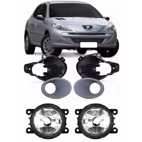 Kit 6 Peças Suporte + Moldura Farol Milha Peugeot 207 Hatch Sedan Sw Passion Hoggar 2009/