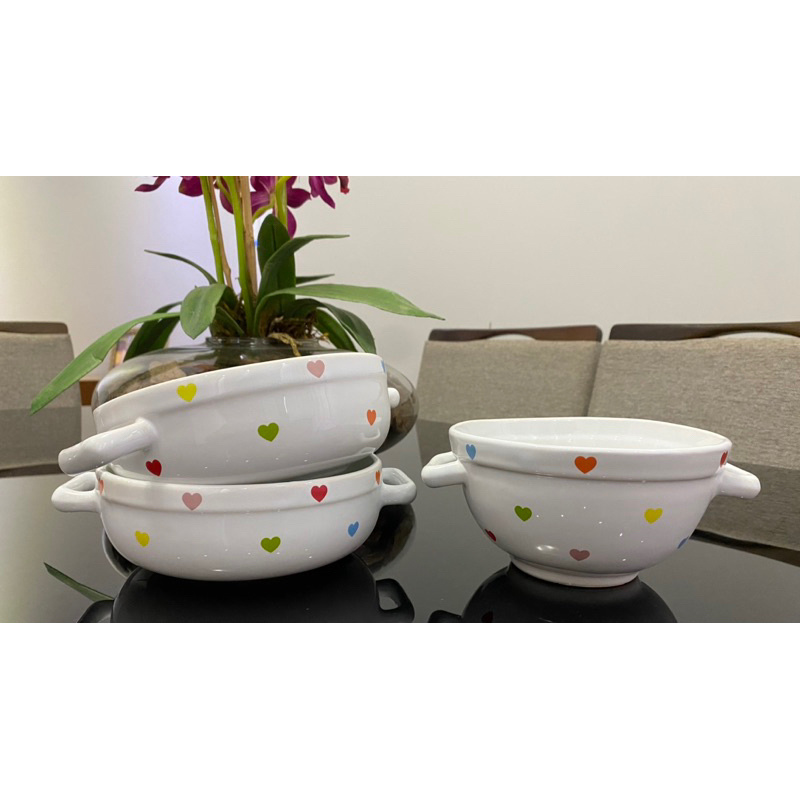 Kit C/3 Tigelas com Alça em Cerâmica Poá Coração