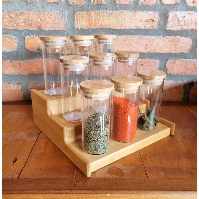 Rack Organizador Extensível De Bambu Escadinha 3 Níveis Suporte Porta Temperos Condimentos