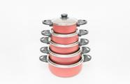 Conjunto De Panela 9 Pçs Antiaderente Tampas De Vidro Vermelha