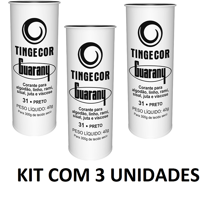 TINGECOR GUARANY TINTA TECIDO 40G PRETO(31) kit COM 3 UNIDADES