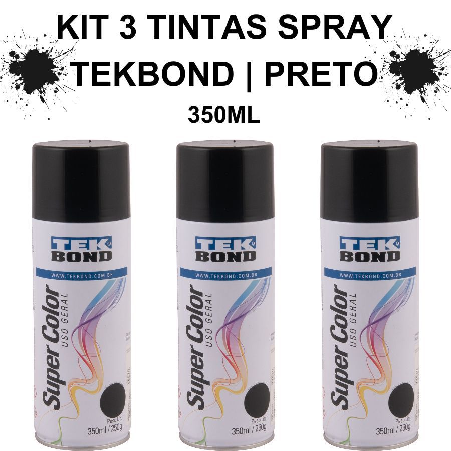 KIT 3 Unidades de Tinta Spray | Preto Fosco 350ml | TEKBOND