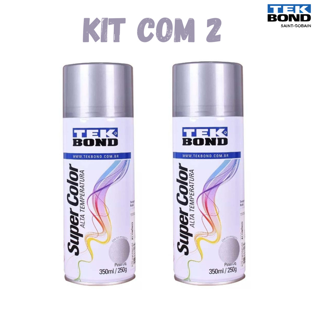 kit com 2 unidades Tinta Spray Alumínio SuperColor Alta Temperatura 350ml Tekbond