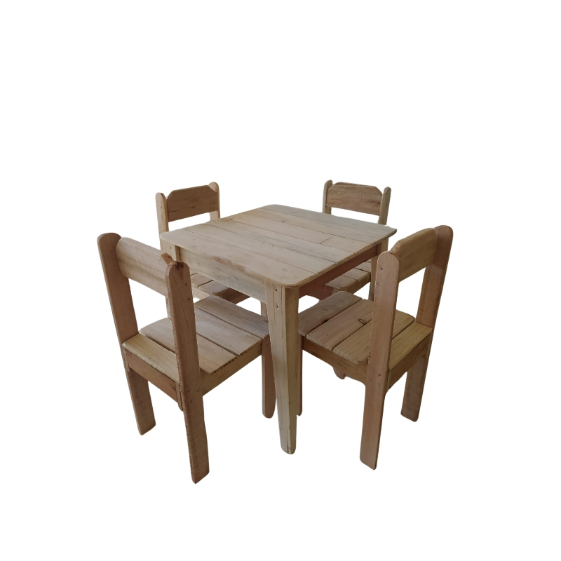 Kit 4 Cadeirinhas 1 Mesinha Infantil de Madeira Escolar Igreja