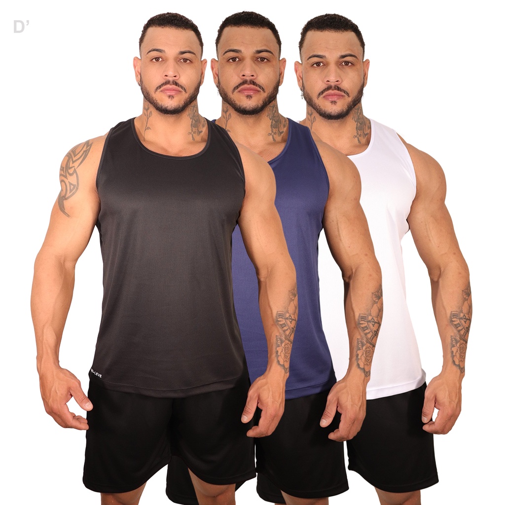 Kit 3 Regata Dry leve Masculina Fitness para Treino e Academia Premium