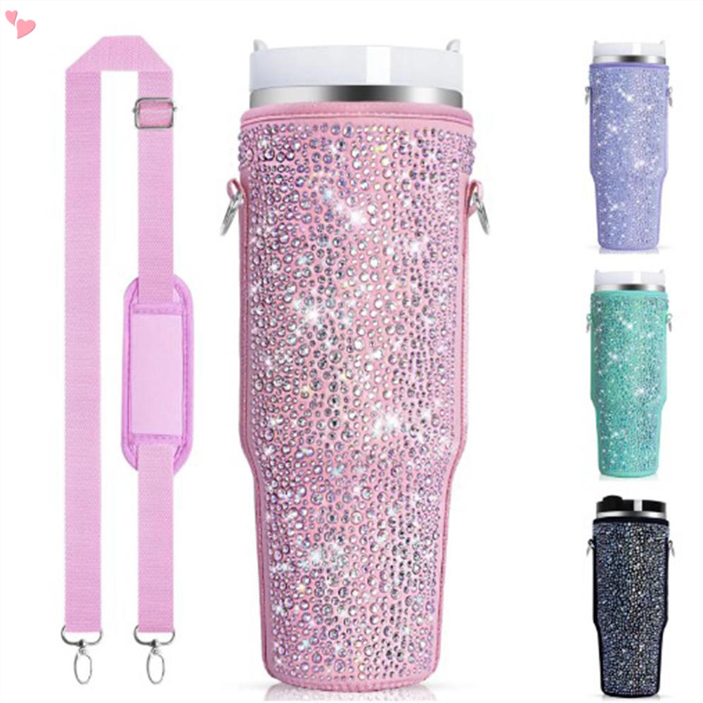 Saco Porta Garrafas De Água Bling Para Stanley Quencher H2.0 & Adventure 40 oz Tumbler Com Cabo , Neoprene Alça Ajustável Acessórios De Copa