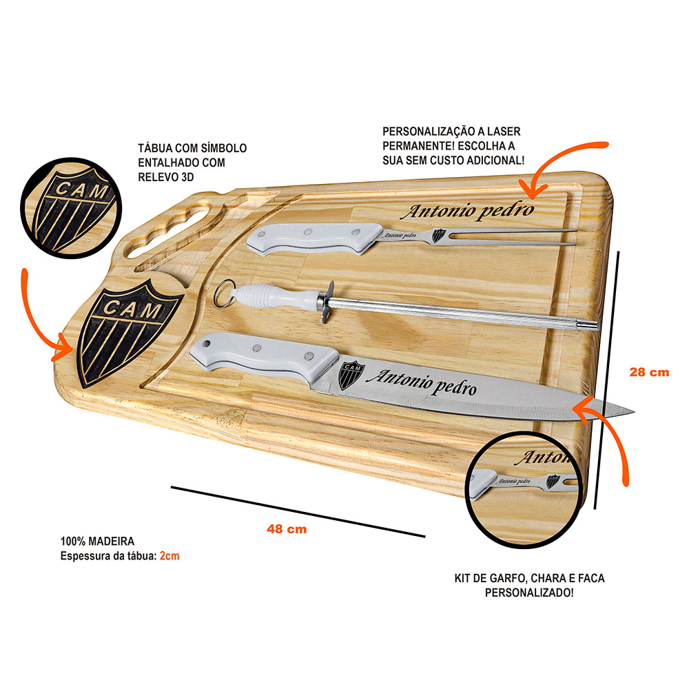 Kit Churrasco Tábua de Carne Grande com faca e Garfo Inox Personalizado