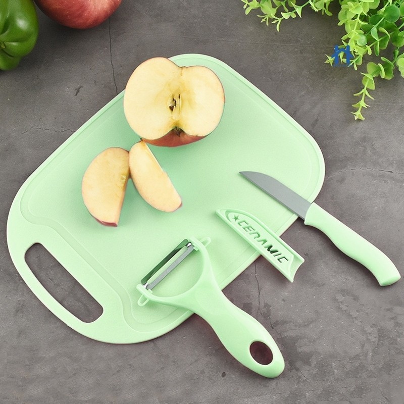 Kit Jogo 3 Peças Cozinha Gourmet com Faca Descascador Inox e Tábua de Corte para Cozinha HH