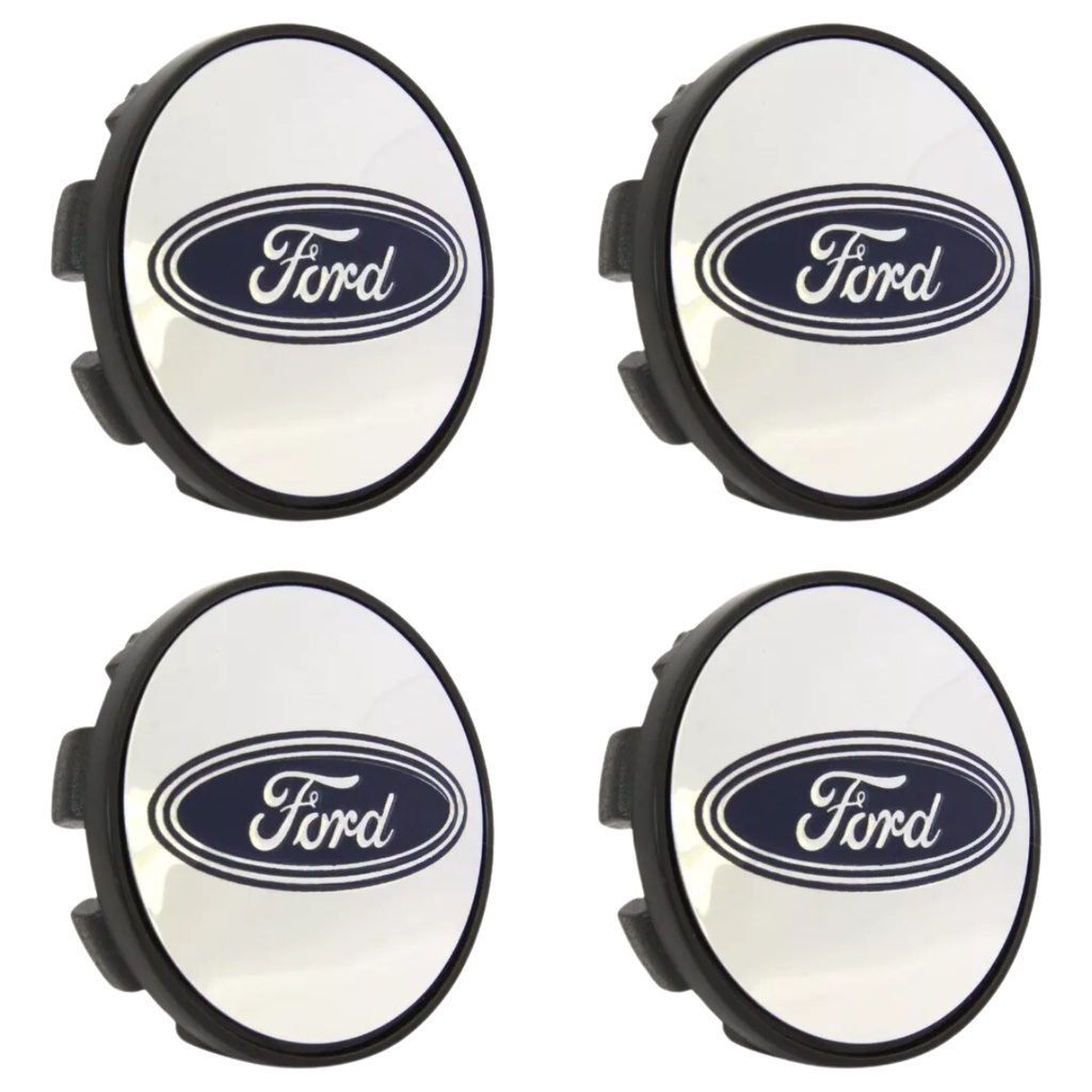 Kit 4 Calotas Miolo Tampa Roda Calotinha Central Liga Leve 56mm Ford EcoSport Focus Novo New Fiesta Fusion Ka Hatch Sedan 2006 á 2023 Prata Emblema Alto Relevo Instalação Rápida Fácil de Encaixar