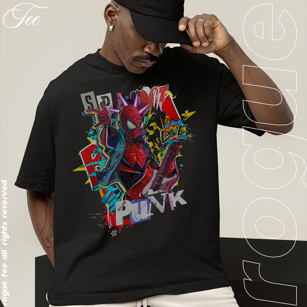 Camiseta Basica e OVERSIZED Spider Punk Style Rock AranhaVerso Filme Animado Tee Unissex