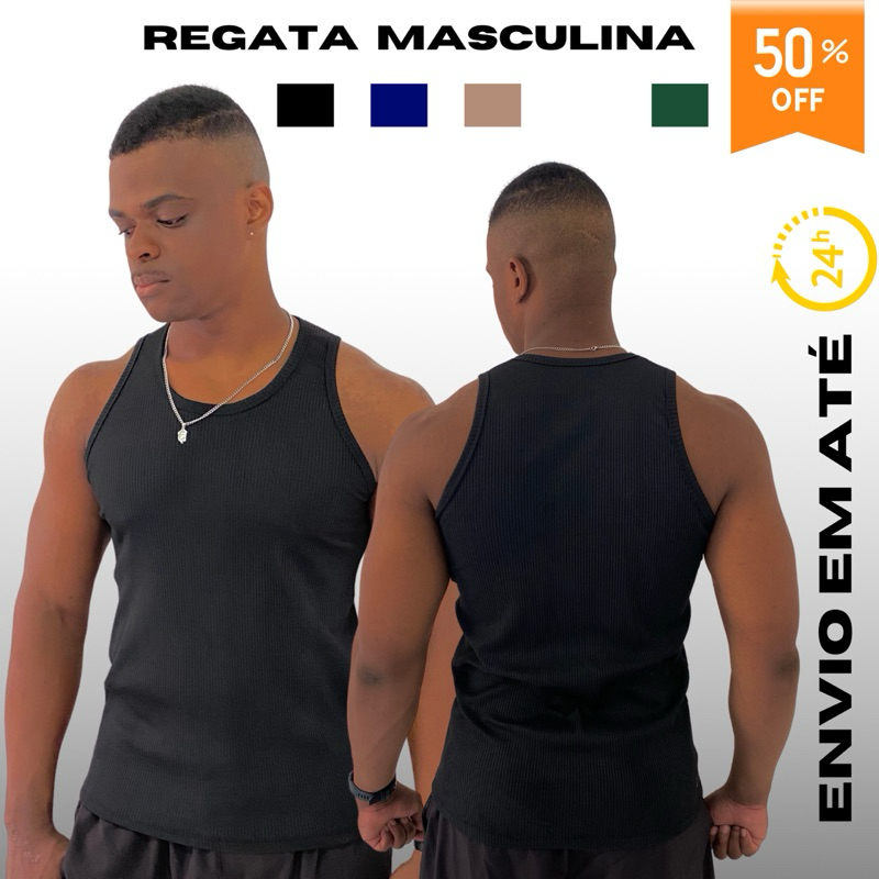 Regata Americana Masculina Ribana Canelada Justa Camiseta Algodão Academia Basica Tamanho P M G GG