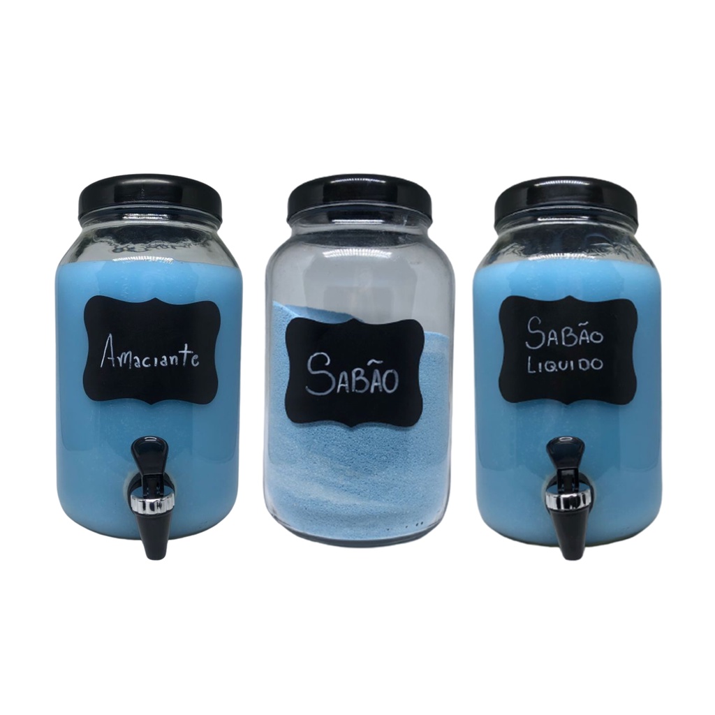 Kit Lavanderia 3 Vidros Para Deixar Sua Lavanderia Organizada, Sabão Em Pó, Sabão Liquido, Amaciante