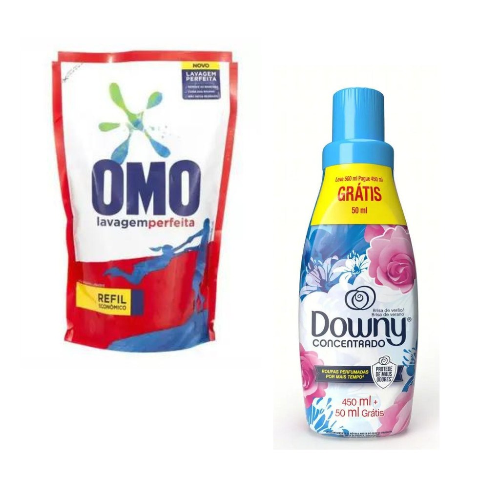 Kit Sabão Líquido Omo 900ml Refil + Amaciante Downy Concentrado 500ml Kit Lavanderia