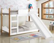 Beliche Cama Solteiro Infantil com Escada Escorregador Proteção Lateral Quarto Dormitório Branco