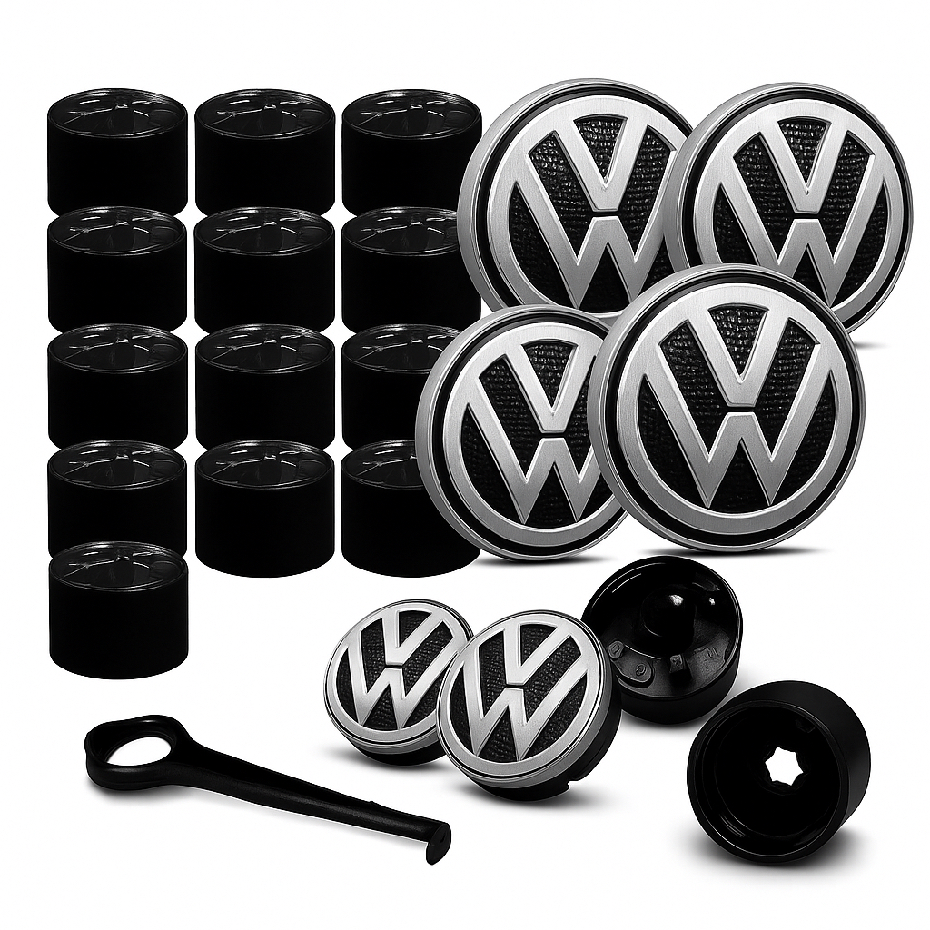 Kit 4 Calotinha Centro Roda Original Vw + Capa Parafuso Roda Kit C/20 Unidades VW Fox Polo Bora Golf