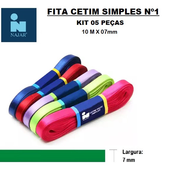 Fita Cetim Najar Nº1 * KIT 05 PEÇAS (10m X 7mm)